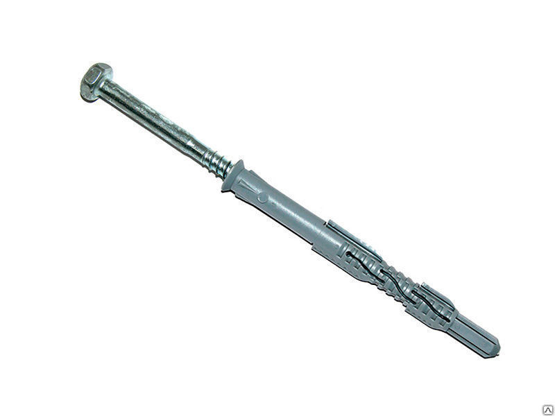 Дюбель фиксирует метиз в посадочном отверстии. Он оснащен усиливающими элементами, увеличивающими надежность соединения: заостренные выступы, продольные распорки, боковые «усы». Большинство креплений имеют продольные прорези, способствующие равномерному расширению вставки при вкручивании шурупа.