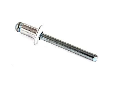 Вытяжные заклепки – это металлический крепеж, используемый для скрепления и взаимной фиксации листовых материалов или тонкостенных деталей. После монтажа они образуют прочное неразъемное соединение. Заклепки устанавливаются в предварительно просверленные отверстия, после чего вытягиваются за ножку с помощью специального инструмента – заклепочника. В зависимости от конструкции, тяговые заклепки могут устанавливаться как в сквозные, так и в глухие отверстия. При этом двухсторонний доступ к месту монтажа не требуется. Демонтаж выполняется путем высверливания заклепок.